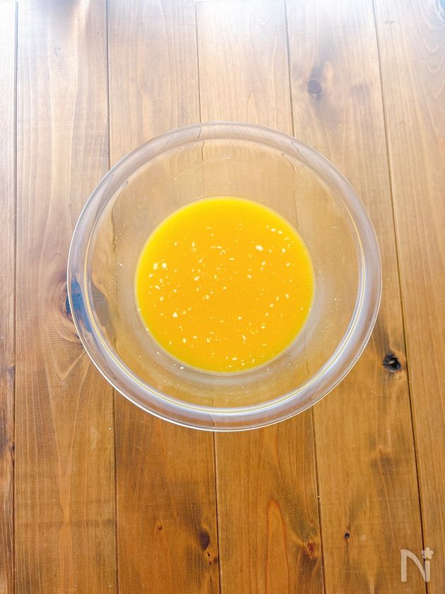 (3) 卵、砂糖、塩、バター、牛乳の順に加えて、その都度混ぜる。