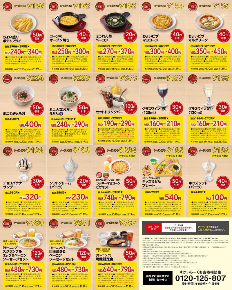 2025年11月6日現在、ガストの公式Xで「お出かけついでにガストへGO!! おトクーポン祭」と題し、11月19日まで使える33枚のクーポンを公開しています。