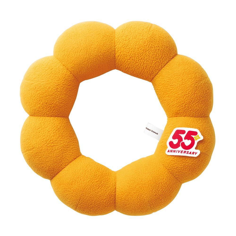 人気のポン・デ・リングがぬいぐるみになりました。55周年のオリジナルワッペンがついたデザインで、ポン・デ・〇〇になりきって楽しめそう。素材はポリエステルで、サイズは横約26センチ×縦約26センチ×奥行約7センチ。