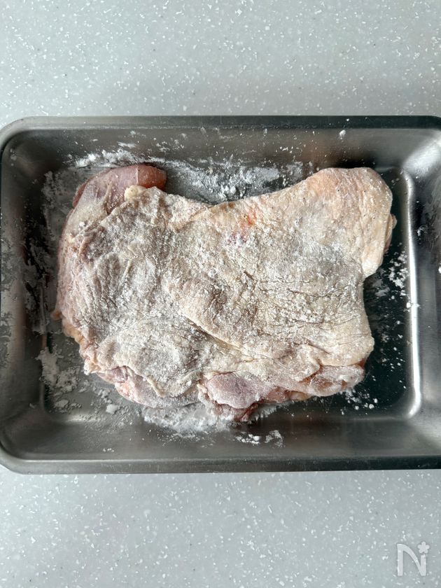 塩、こしょうで下味をつけ、片栗粉をまぶす。