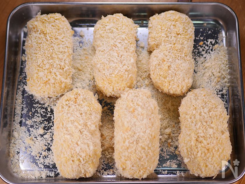 ✅クリーム系のコロッケは割とすぐに破裂するので注意。火は通っているので衣が淡いきつね色になればOK