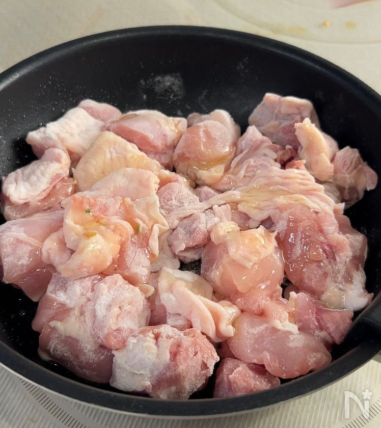 ・鶏もも肉はひと口大に切り、米粉を全体にまぶす。