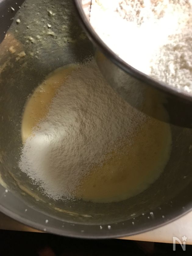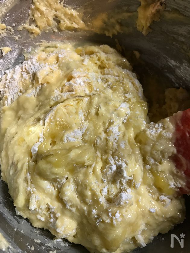 バターはしっかりと泡立てる。粉は入れたら混ぜ過ぎない。