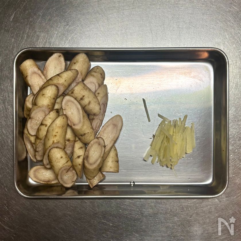 しょうがはせん切りにする。