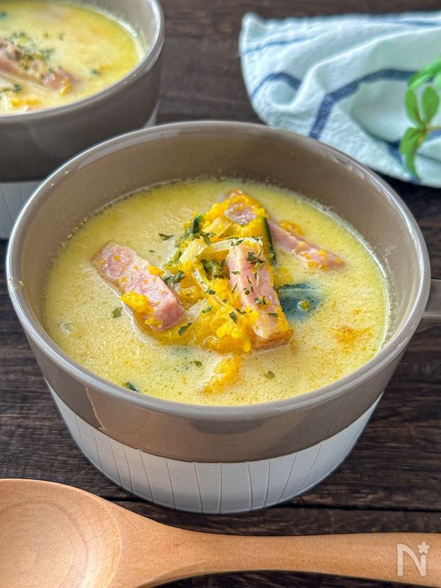 子どもウケ抜群!【かぼちゃとベーコンのゴロゴロスープ】