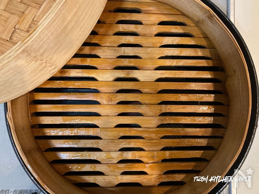 (5) 蒸し器に水を張り、蒸気を発生させ、すぐに蒸せるように準備しておく。