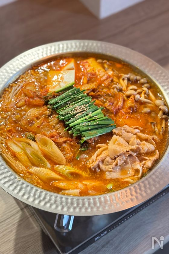 (2) 外側に火が通ったら、ご飯・ツナ缶・長ネギ・鶏ガラの素を入れてよく炒める。