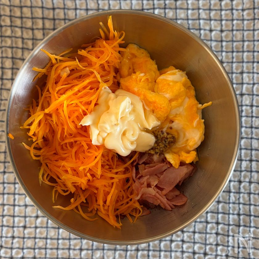 コク旨♡ふわ玉入り【人参とベーコンのハニーマヨ和え】