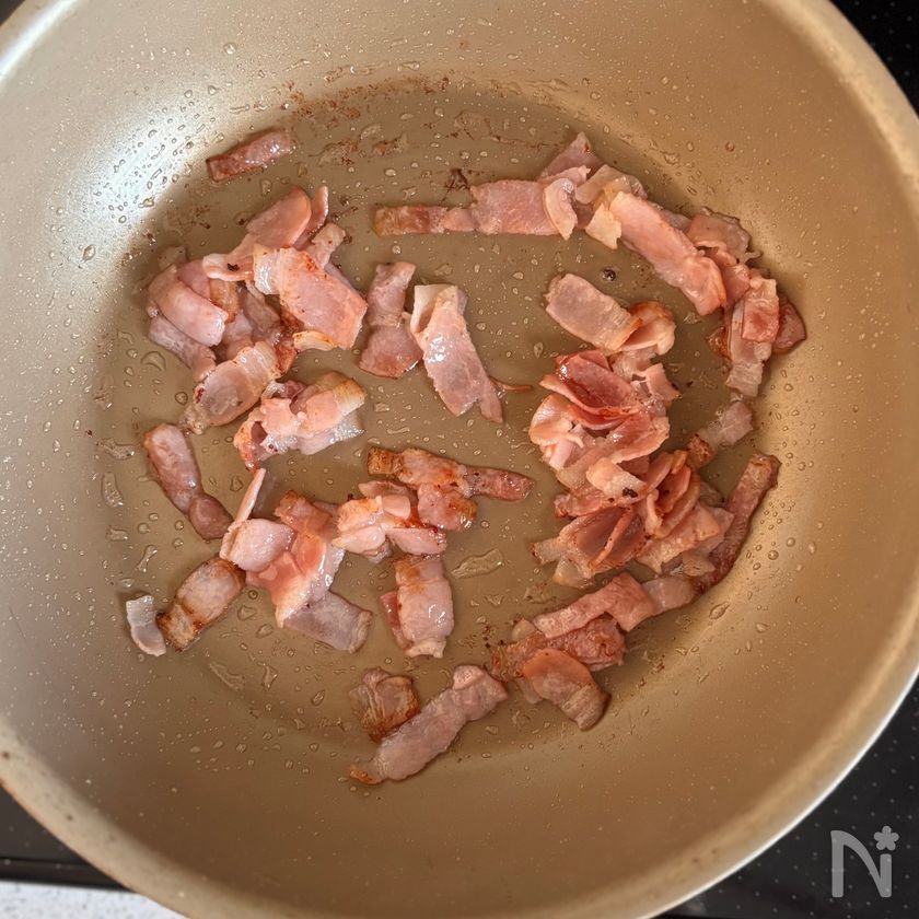 ベーコンはカリッとするまで炒めると食感のアクセントになります♪