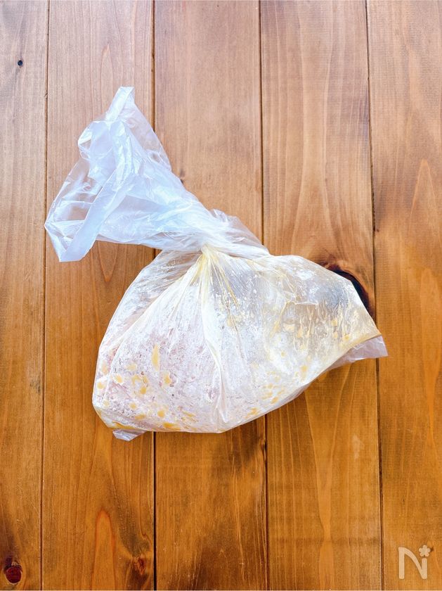 (2) 別の袋に片栗粉を入れ、①を移し替えて振る。