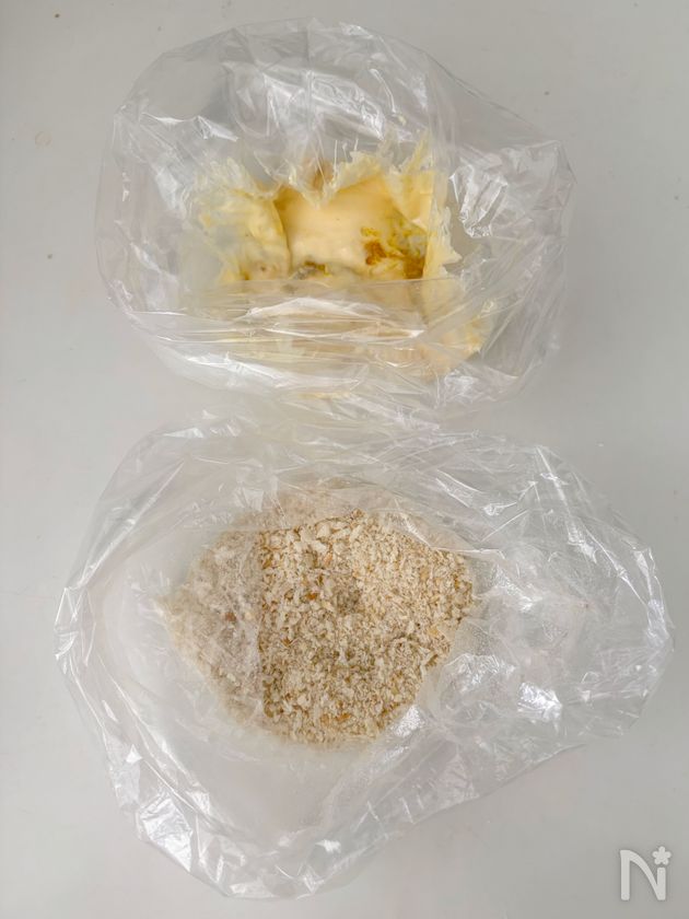 ・パン粉は、細目のものを使用してください。細目のものがない場合は、ポリ袋の上から手で細かくすると良いです。