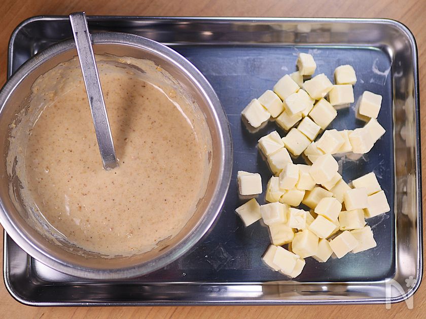 (2) ○プロセスチーズは角切りなどに細かく刻む。