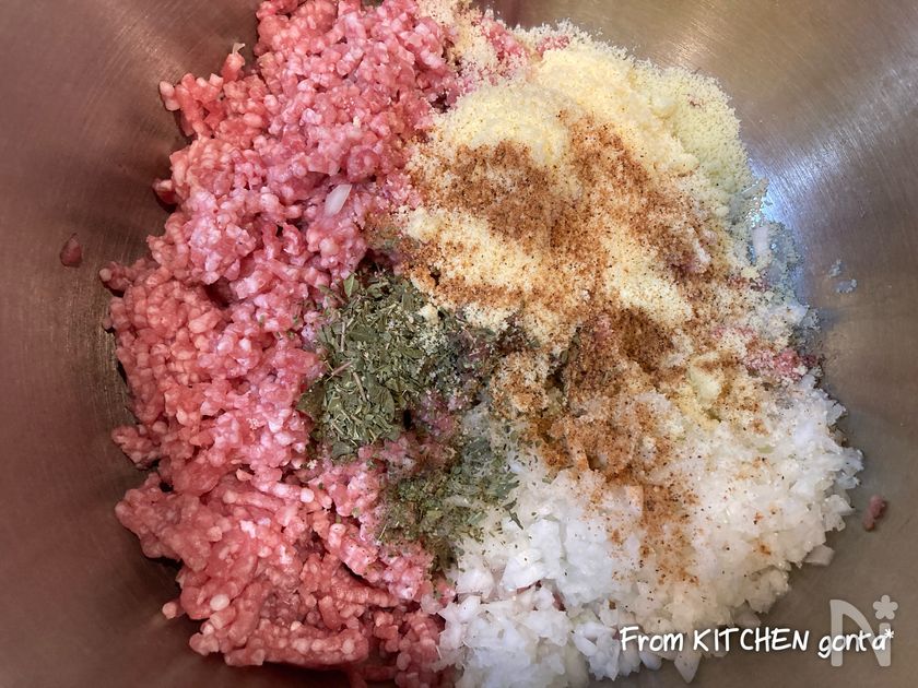 【A】を全て加え、よく混ぜる、20個ほど肉団子を作る。