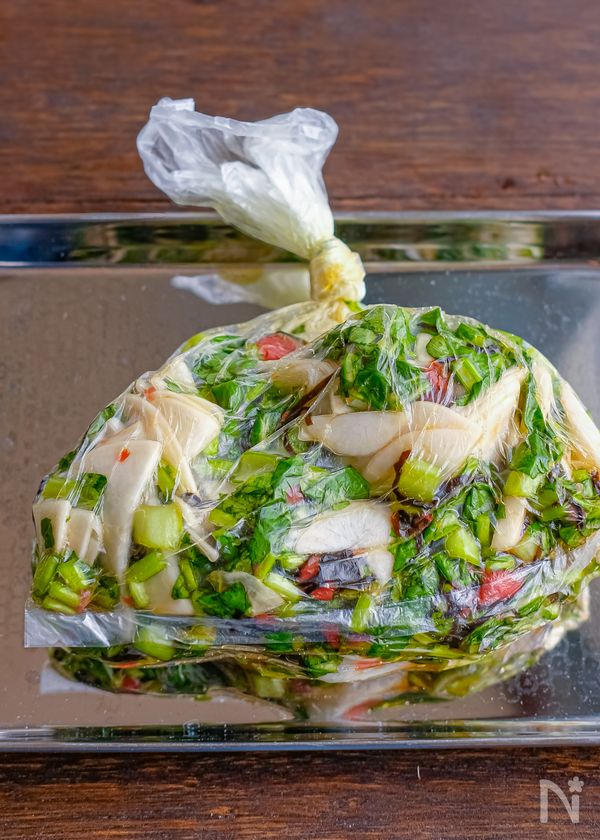 ・しっかり揉んで空気を抜くと、短時間でも味がよくなじみます。