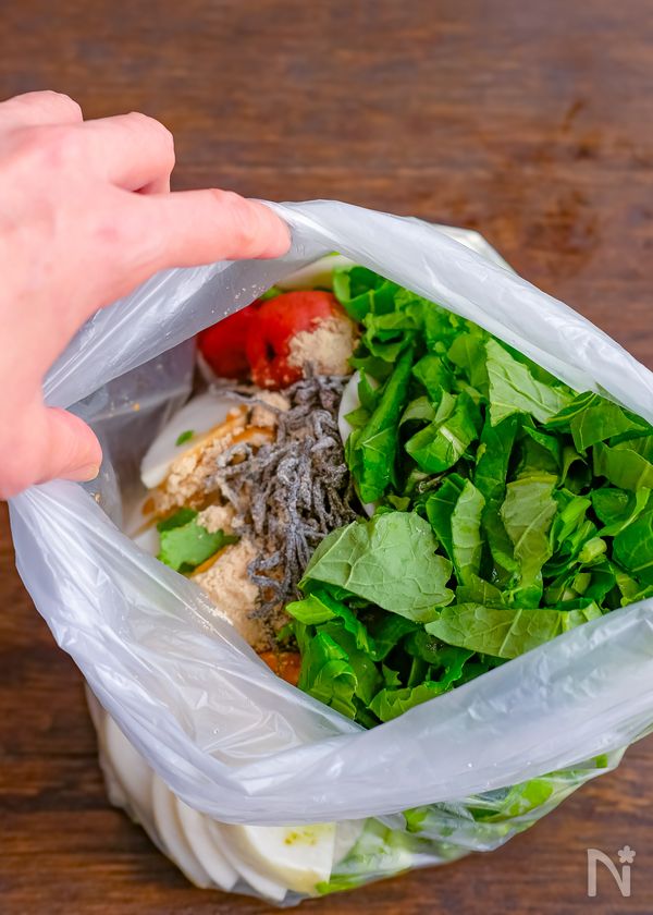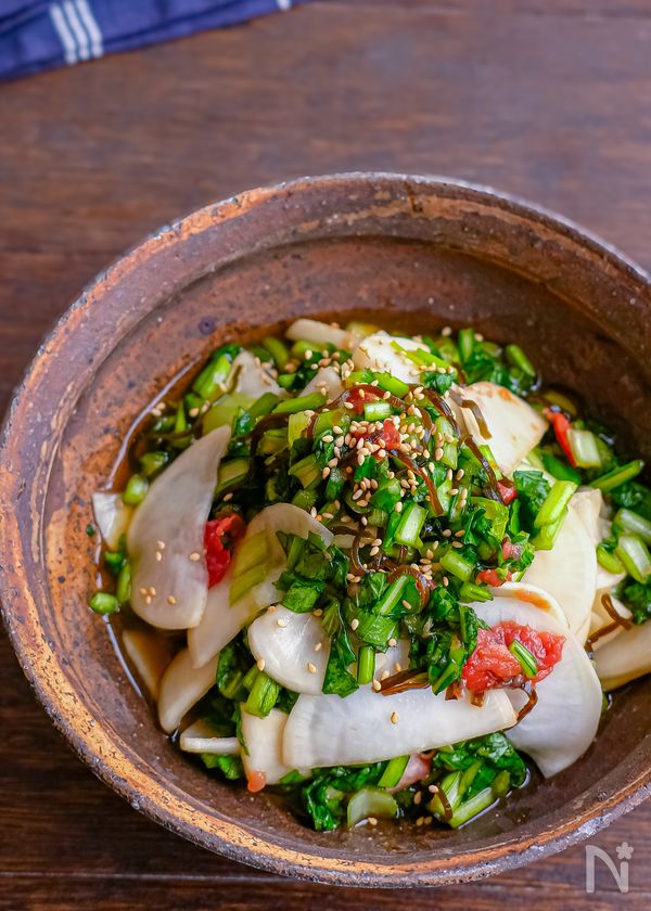 ポリ袋で簡単!春の小かぶで梅こんぶ漬け