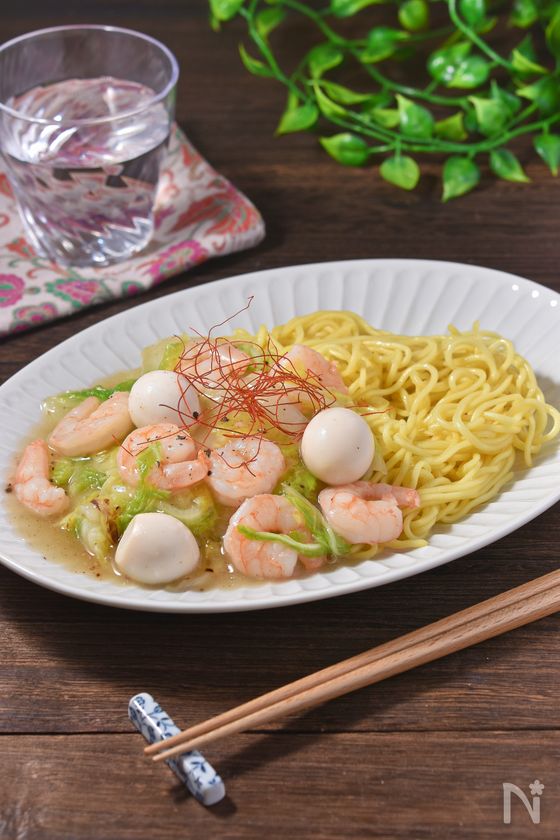 えびと白菜の塩あんかけ焼きそば|とろ〜り熱々♪ワンパンで簡単