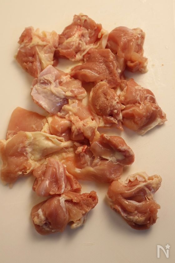 (下準備) 鶏モモ肉は5cmほどにカットしておく。