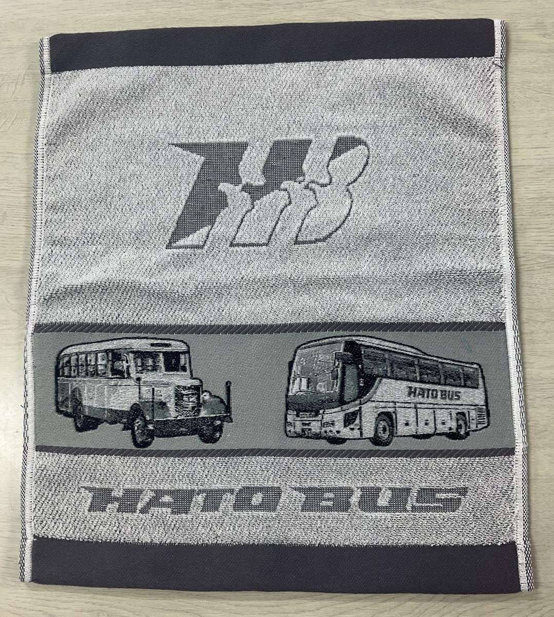 新旧のはとバスがデザインされた非売品のタオルと、レトロな記念乗車券です。