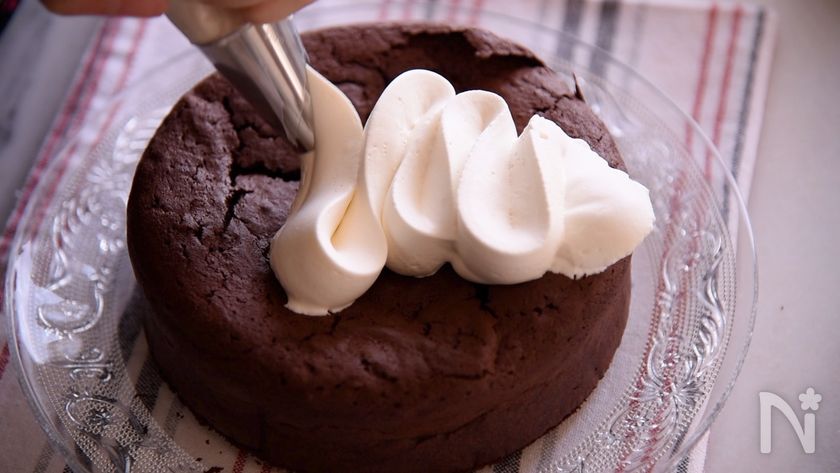 生クリームでデコレーションすると映える記念日のケーキになります。綺麗にクリームを絞るのは難しいのでサントノレ口金で絞ると非対称でもカッコよく見えるます。少し形が悪くても溶けない粉糖をかければとっても綺麗に見えるので、まるでケーキ屋さんのようなデコになりますよ。