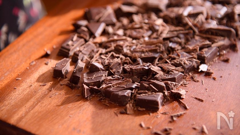 (2) 無塩バターを軽量する。ブラックチョコレートは刻んでおく。
