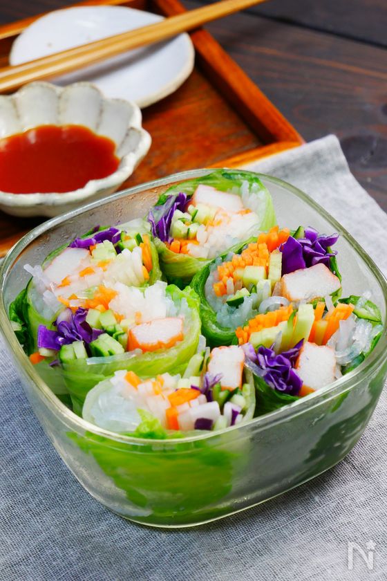 カニカマ入り♪くるっとレタスで簡単サラダ春巻き
