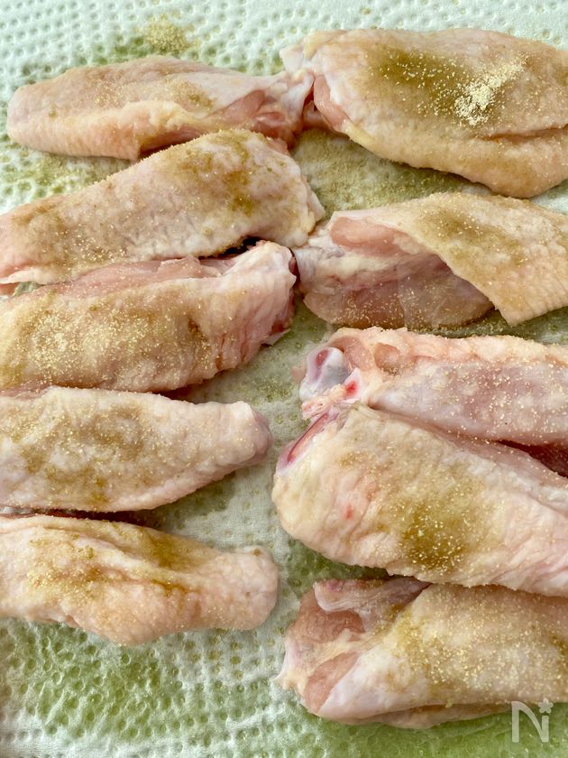 (下準備) 手羽中に【A】をまぶす。