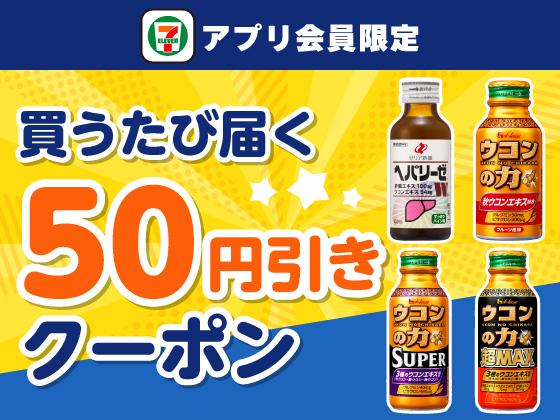 12月4日から31日までの期間、セブン-イレブンアプリを提示して、対象のウコン系ドリンクを購入するごとに、次回使える50円引きクーポンがもらえます。