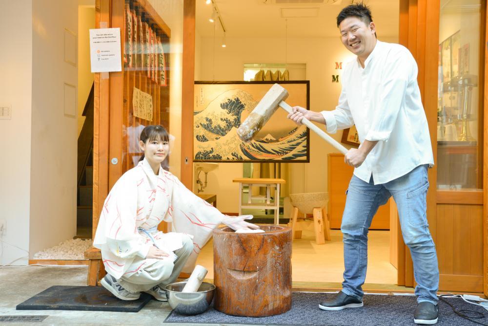 いずれかの商品を購入した人限定で、10回のもちつきチャレンジ(400円相当)が無料で体験できます。