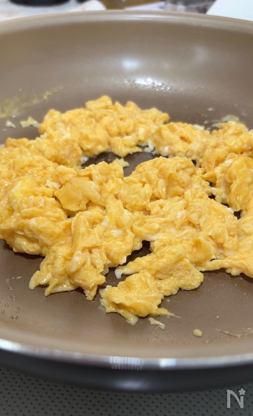 ・炒り卵の食感をなるべく楽しみたい方は、最後に加えると形もごろっと残ります。