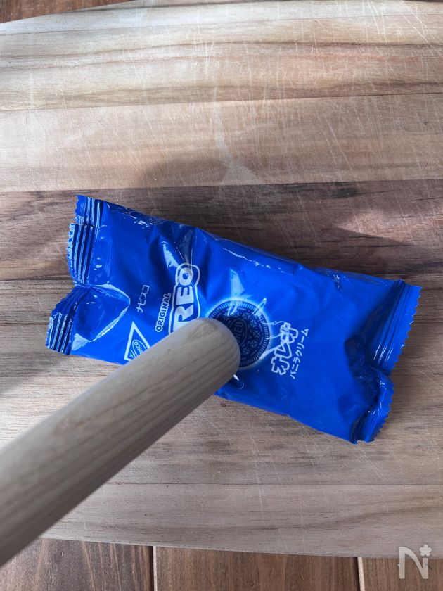 (オレオの端5mmほど開けると、空気が抜け潰しやすくなります)