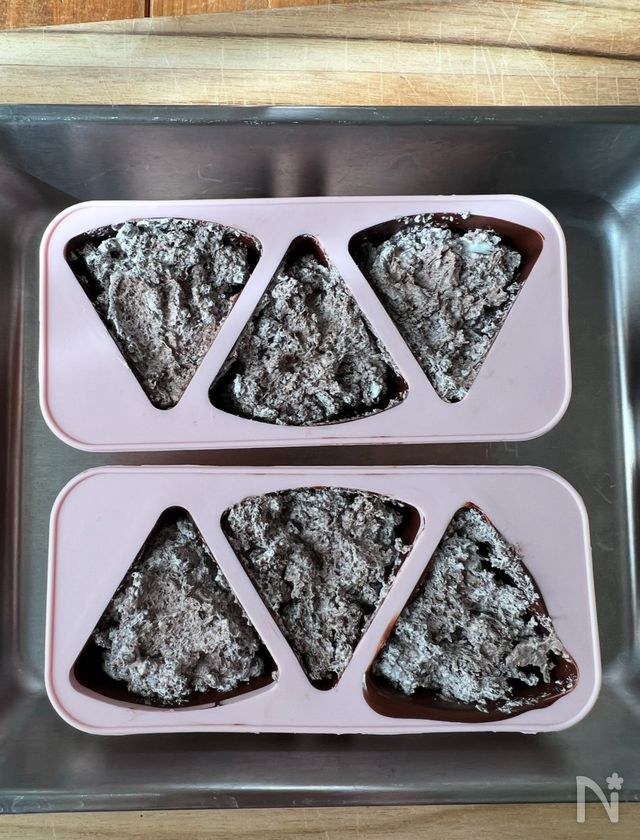 (2) 型に塗ったら冷蔵庫で5分冷やす。