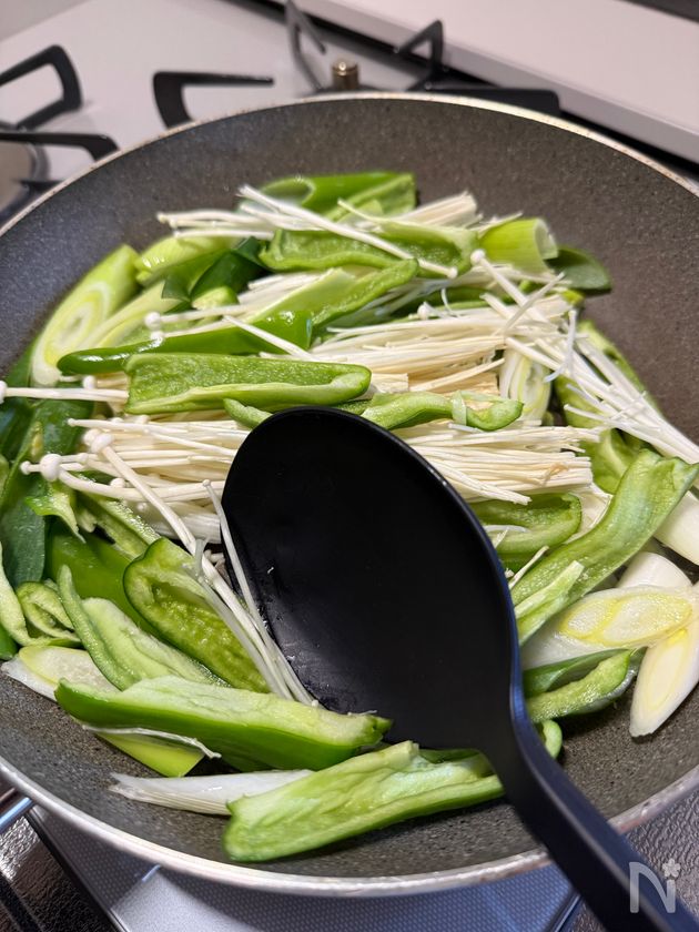 長ねぎやえのきに焦げ目がつくくらい炒めると香ばしさもアップして美味しいです。