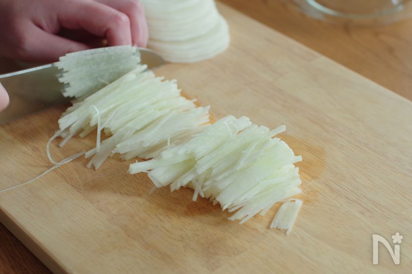 ・大根の千切りはスライサーを使うと簡単です。