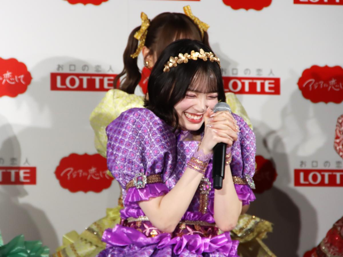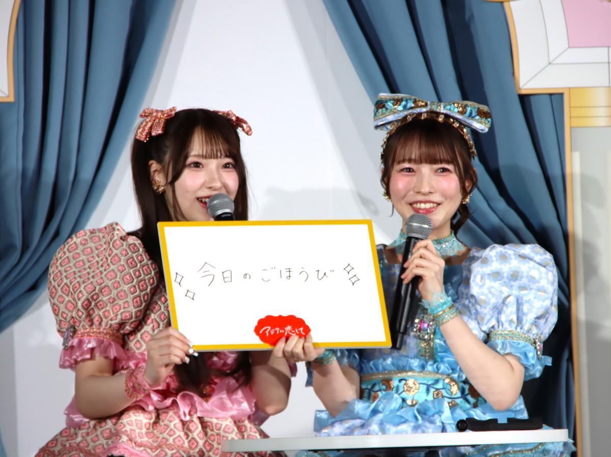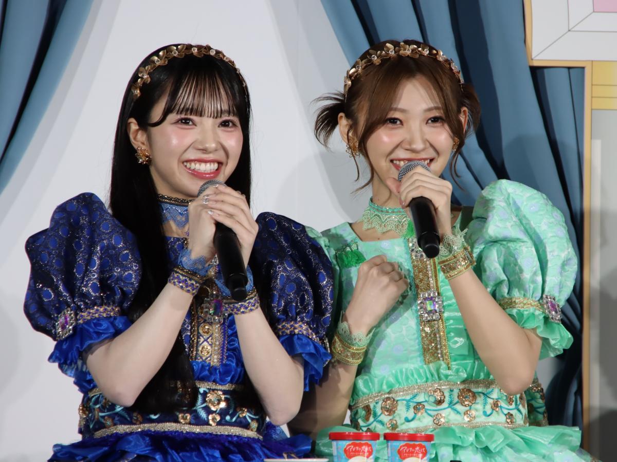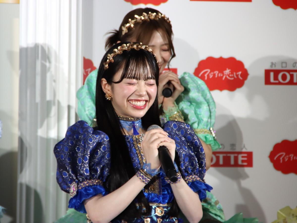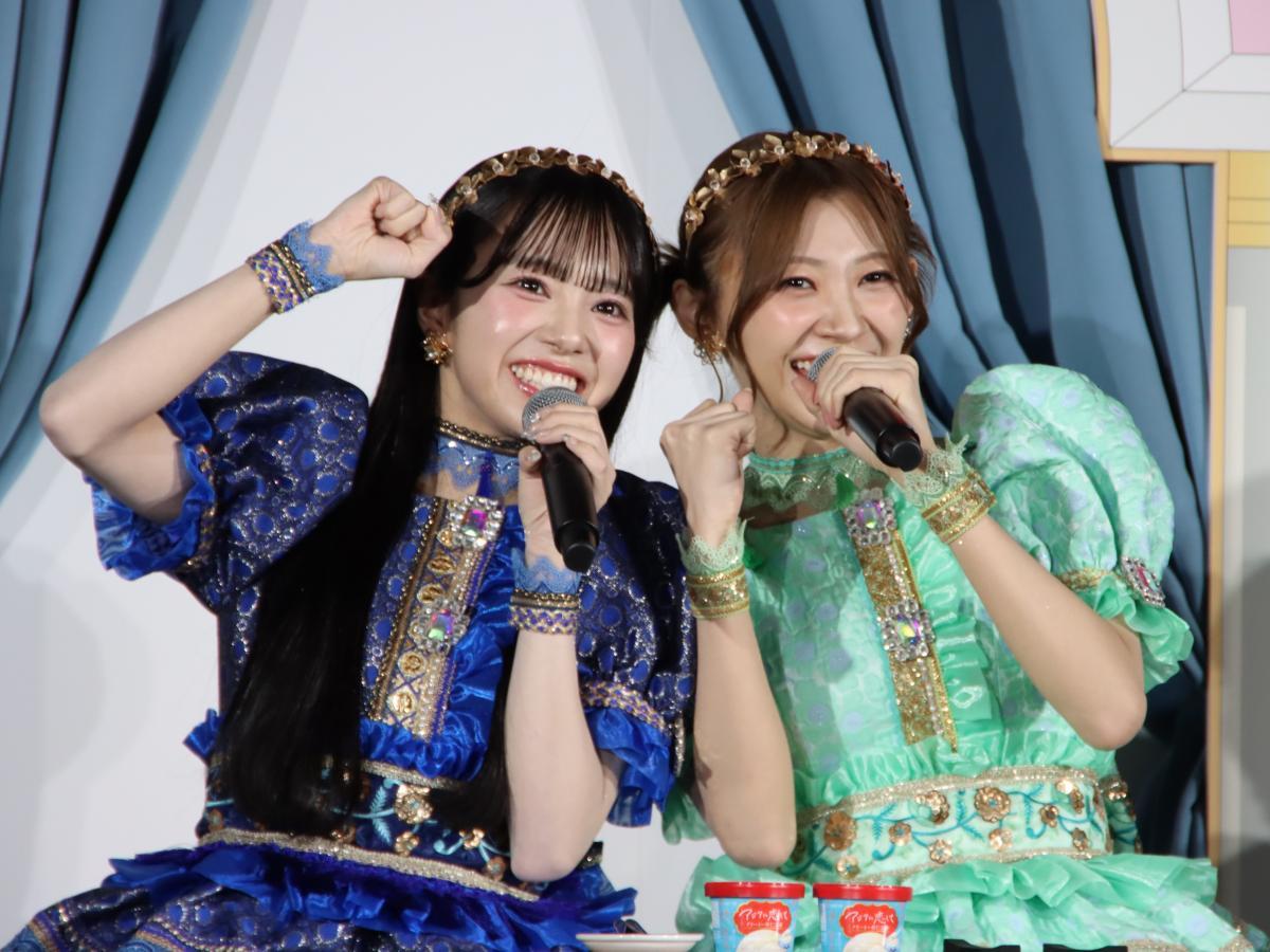 発表会では、「CUTIE STREET」のメンバー8人が2人1組(計4チーム)になって、食レポ対決を行いました。優勝したのは、「マンゴーラッシー」アイスを試食した川本笑瑠さんと佐野愛花さんのペア。