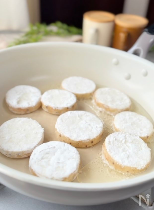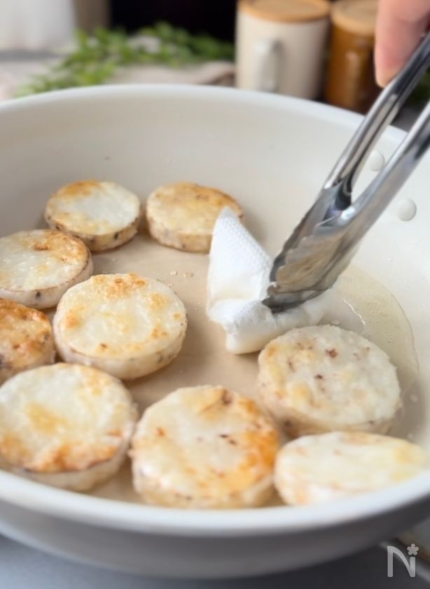 (3) 少しの油で両面焼き色がつくまで焼く。