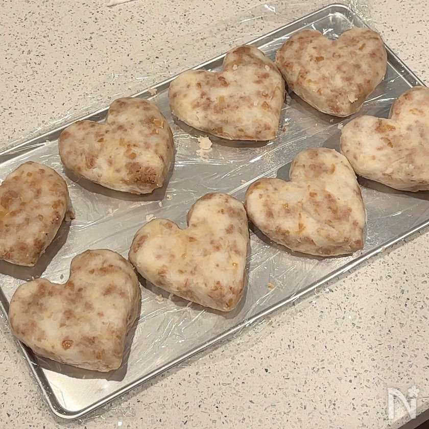 8等分にしてハート型に形成し、冷蔵庫で10分休ませる。