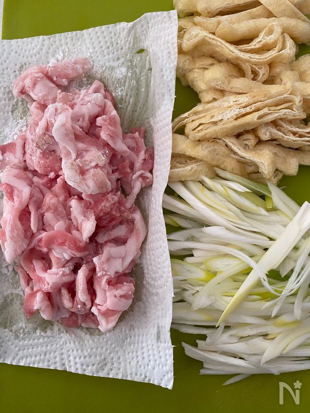 (下準備) 油揚げは5mm幅に切る。