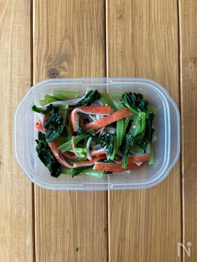 レンジで5分!【小松菜とカニかまの旨塩ナムル】