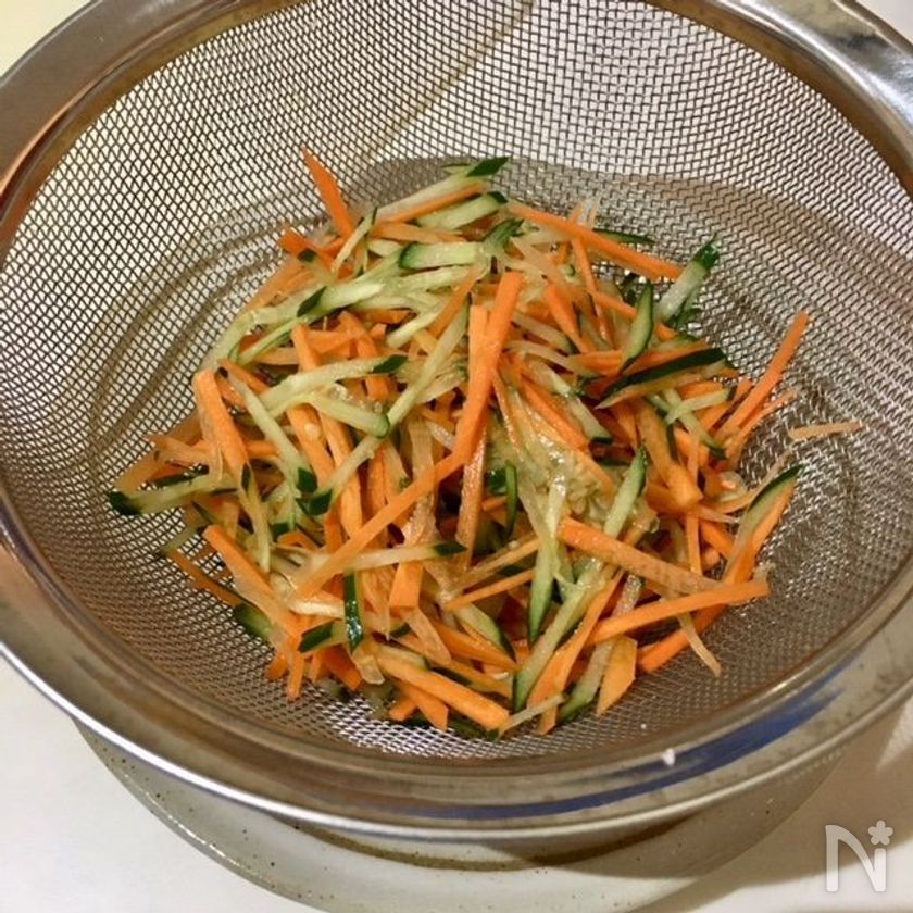 塩(分量外)をまぶし、15分程置いて水気を軽く絞る。