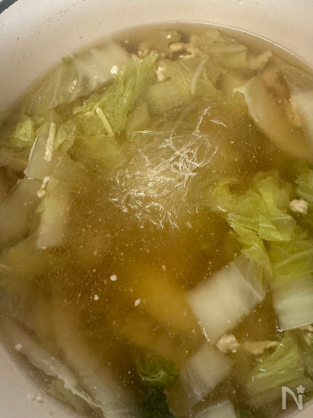 鶏ひき肉と白菜のゆず春雨スープ【生姜でぽかぽか♪】