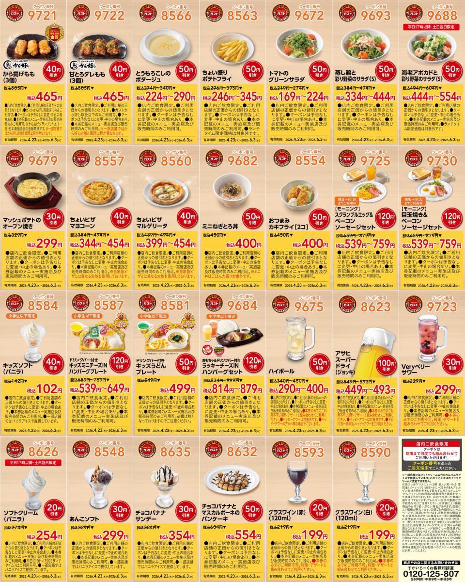 ガストの公式Xは、2026年4月23日に公式Xで新たなクーポンを公開しました。