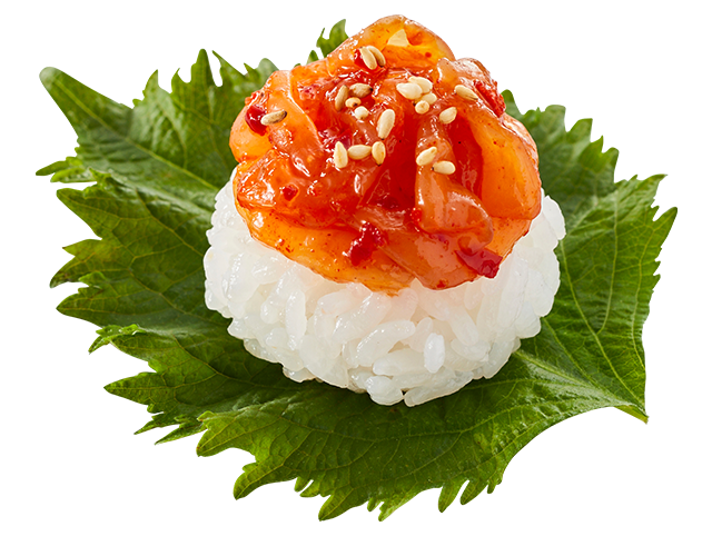 ・北海道産ほたてひもチャンジャ風大葉包み(一貫) 110円~