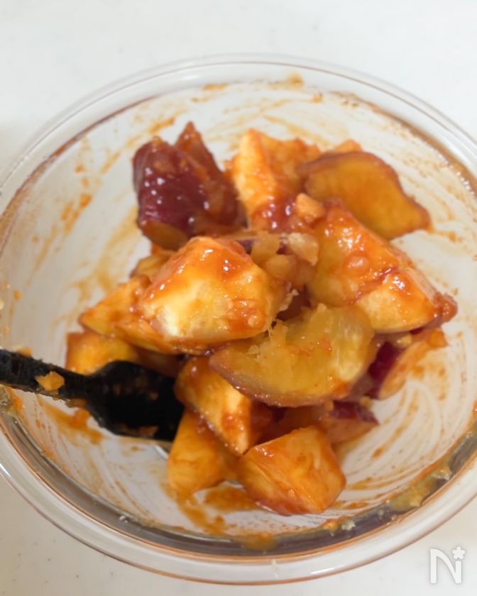 〇レンジ加熱後、つまようじがすっと入ればOK。固ければ30秒ずつ加熱して様子を見てください。