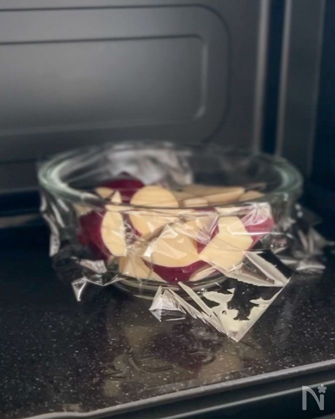 ふんわりラップをして600Wの電子レンジで5分加熱する