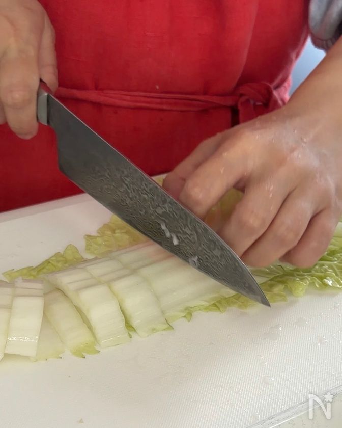 白菜は1〜2cm幅に切る。椎茸は薄切りにする。