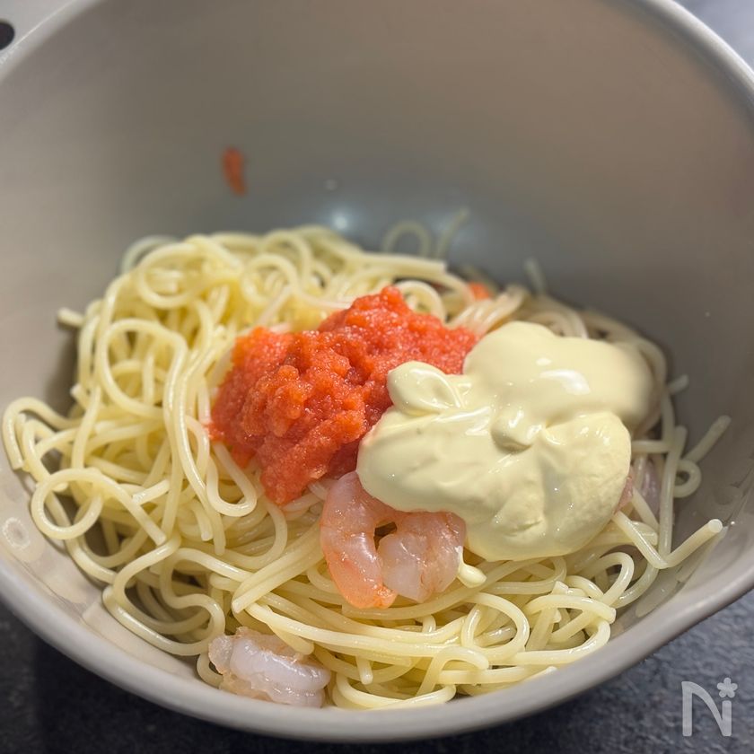 【エビの明太マヨスパゲティサラダ】ワインに合う♡デリ風サラダ