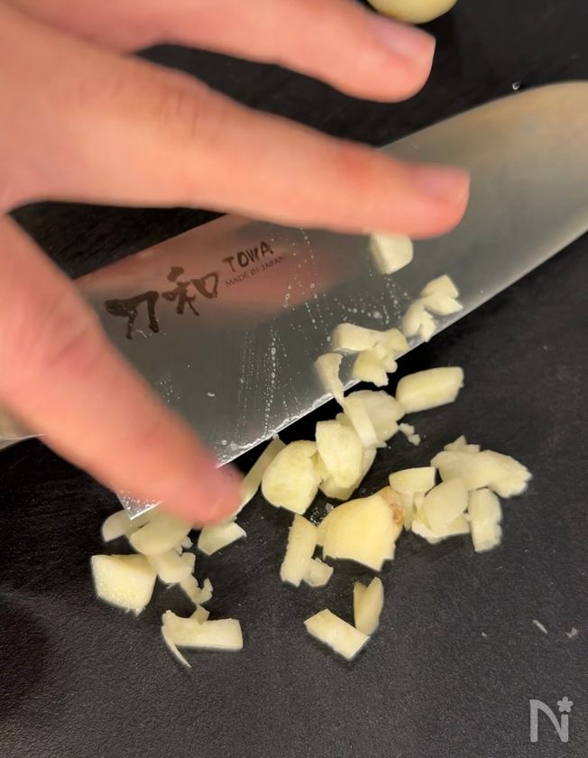 (下準備) にんにくはみじん切りにする。