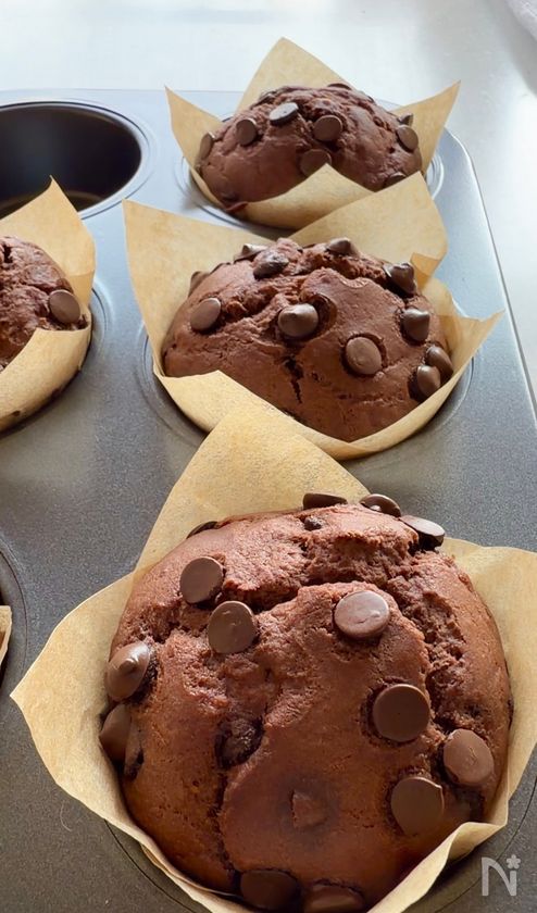 <混ぜて焼くだけ>米粉のチョコバナナマフィン