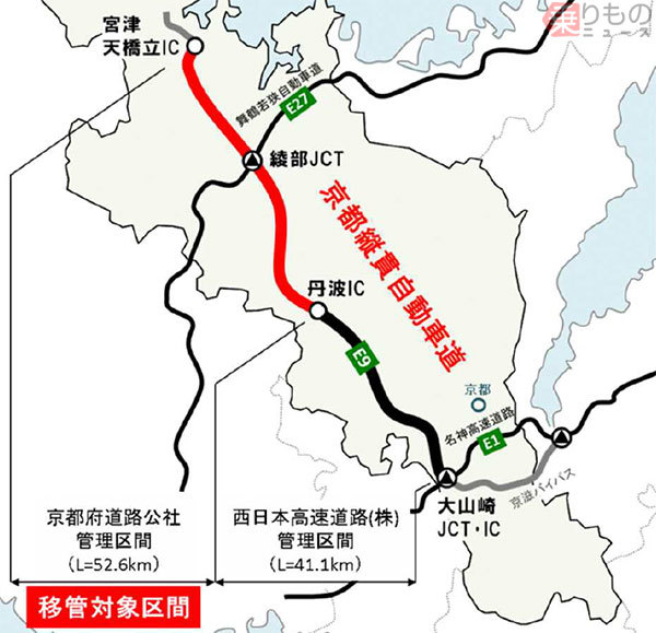 京都縦貫道 全線がNEXCO移管へ 京都府管理区間との別料金解消 休日割引も導入