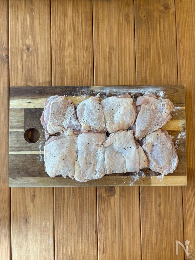 塩こしょうを振り、さらに薄力粉をまぶす。